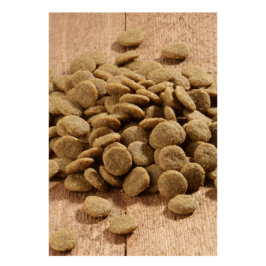 Žitarice (brašno od riže, ječma, i kukuruza), meso i nusproizvodi životinjskog porijekla (brašno od govedine, brašno od peradi), povrće (pahuljice od krumpira*), riba i riblji nusproizvodi (brašno od morske ribe), sjeme (lana i badelja), ulja i masti, nusproizvodi od povrća (sušene kriške cikle, celuloza), jaja i proizvodi od jaja (cijelo jaje u prahu), ekstrakt kvasca* (izvor manan oligosaharida).